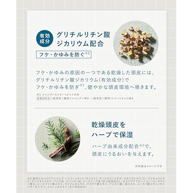 【特徴】ハーブ×皮膚科学処方で乾燥頭皮のフケ・かゆみを防ぐ