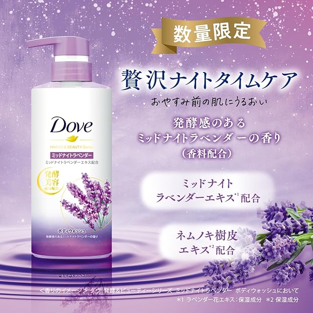 Dove(ダヴ) ボディソープ 発酵&ビューティーシリーズ ミッドナイトラベンダー (ボディウォッシュ) ポンプ 480g