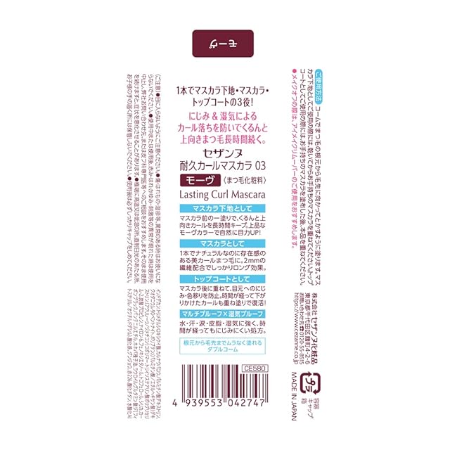 商品名:セザンヌ 耐久カールマスカラ 03 モーヴ 5.0g にじみにくい ロング 繊維配合 ダブルコーム カラーマスカラ
