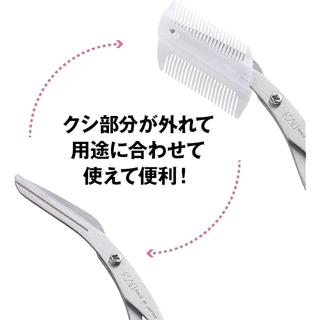 商品名:貝印 KAI クシ付き 眉毛 ハサミ 着脱可 ピンク レディース 右手専用 日本製 KQ3158