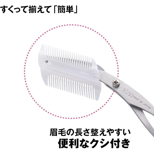 貝印 KAI クシ付き 眉毛 ハサミ 着脱可 ピンク レディース 右手専用 日本製 KQ3158
