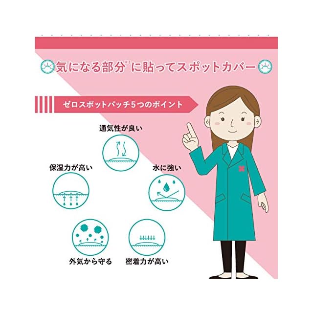 パッチを貼って悩みZEROSPOT! 密着力の高いパッチが気になる部分をしっかりカバー。水や外気などから守ります。また、パッチの肌なじみがいいので貼ったままメイクもでき、貼ったまま外出もOK! パッチのサイズは10mmと12mmの2種類♪ 気になる部分のサイズに合わせて使い分け出来ます。 ビタミンE(※1)・ビタミンC誘導体(※2)・銀(※3)配合 ※1 酢酸トコフェロール ※2 テトラヘキシルデカン酸アスコルビル ※3 肌コンディショニング剤 すべて保湿成分 ■内容量:54パッチ(10mm×30パッチ/12mm×24パッチ) ■使用方法 1.使用した部分を軽く洗い、水気をしっかりとります。このとき、パッチを貼る部分には化粧水や乳液を塗らないようにしてください。剥がれやすくなる恐れがあります。 2.フィルムからパッチを剥がし、貼ります。3時間から12時間程度貼ったままにしてください。パッチの上からメイクもできます。 3.パッチを剥がすときは、そっと引くようにはがしてください。上手く剥がれないときは、水又はぬるま湯で少し濡らしてからはがしてください。
