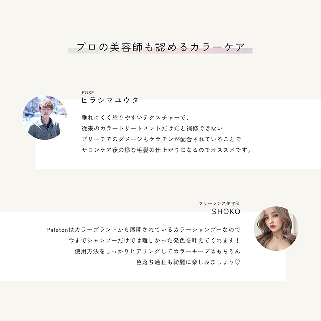 Paletonは髪色を華やかに彩り、同時に髪へのケアも実現。豊かなカラーリングで魅力を引き出し、健やかな髪へと導きます