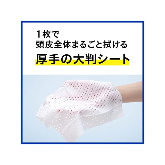 1枚で頭皮全体まるごと拭ける。厚手で液たっぷりの大判シート。