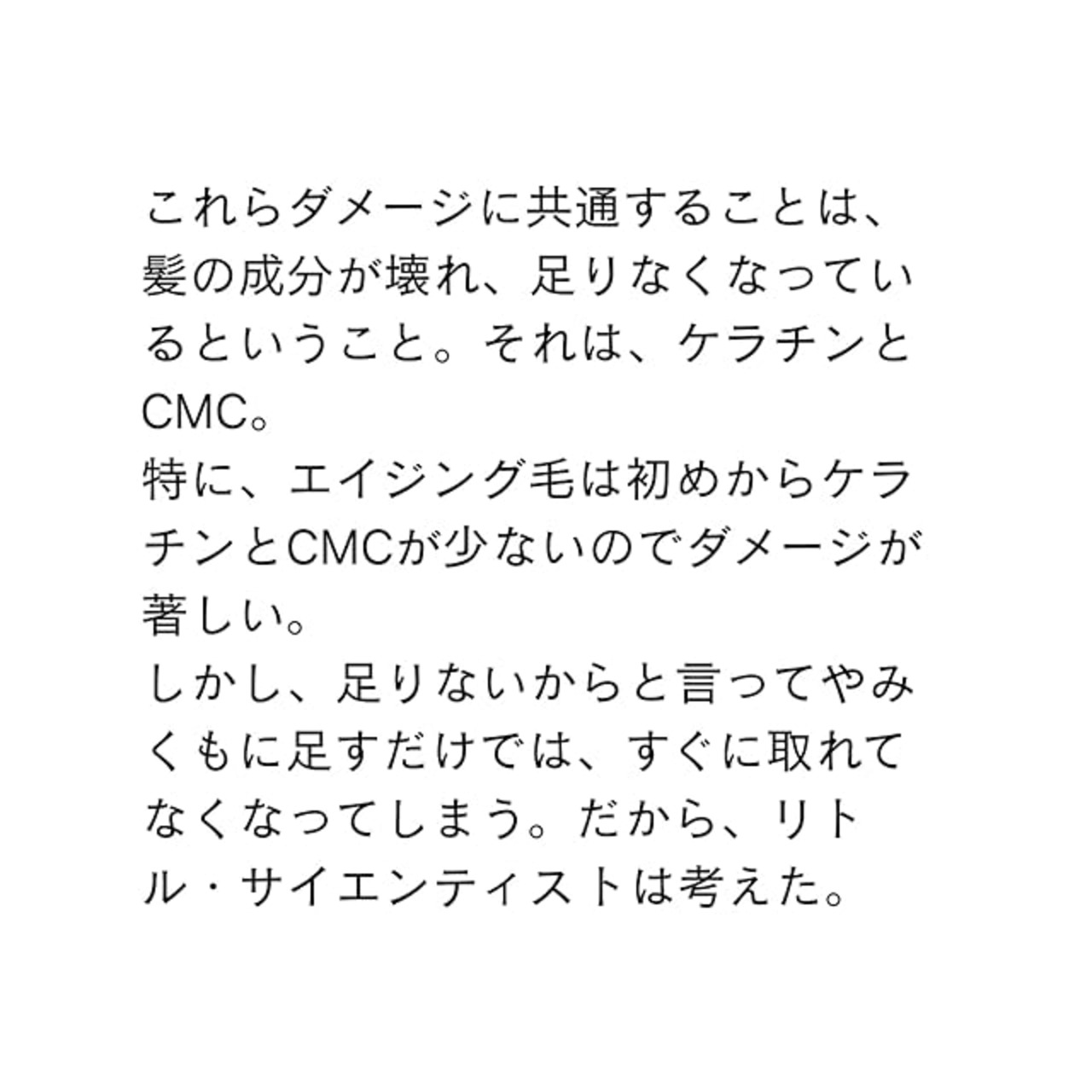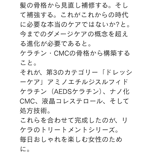 こんな方におススメ:毎朝、コテやアイロンを使う人/ ダメージは少ないけど、やわらかい髪の人 /エイジング毛で、さらにダメージした髪