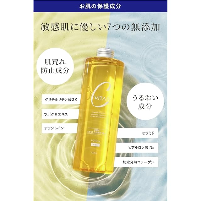 ✅ 大容量550mlのビタミンC化粧水。惜しみなく全身に使え、肌の角質層まで浸透してうるおいをキープ。乾燥や肌荒れを防ぎ、透明感のある肌へ導きます。