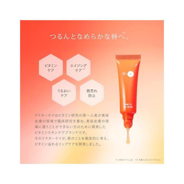 商品名:ドクターケイ (Dr.K) ABC-Gリップセラム (10g / リップ美容液/クリアタイプ) リップケア 唇ケア 唇荒れ 長時間保湿 うるおい 乾燥 高密着処方 唇トリートメント メイク前の下地 リップグロス (ビタミンA/ビタミンB/ビタミンC/グルタチオン/セラミド/ヒアルロン酸 / グリチルリチン酸2K 配合)