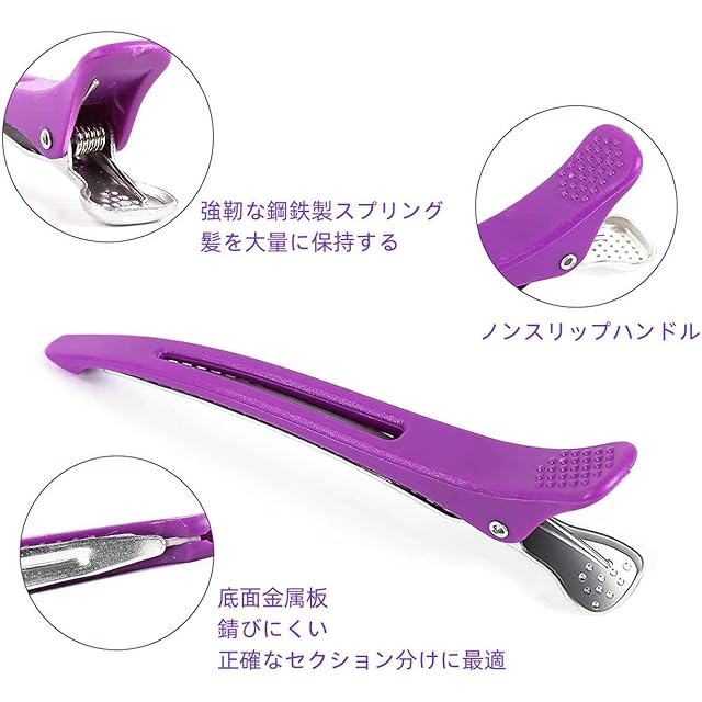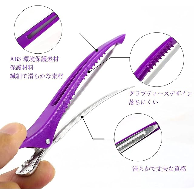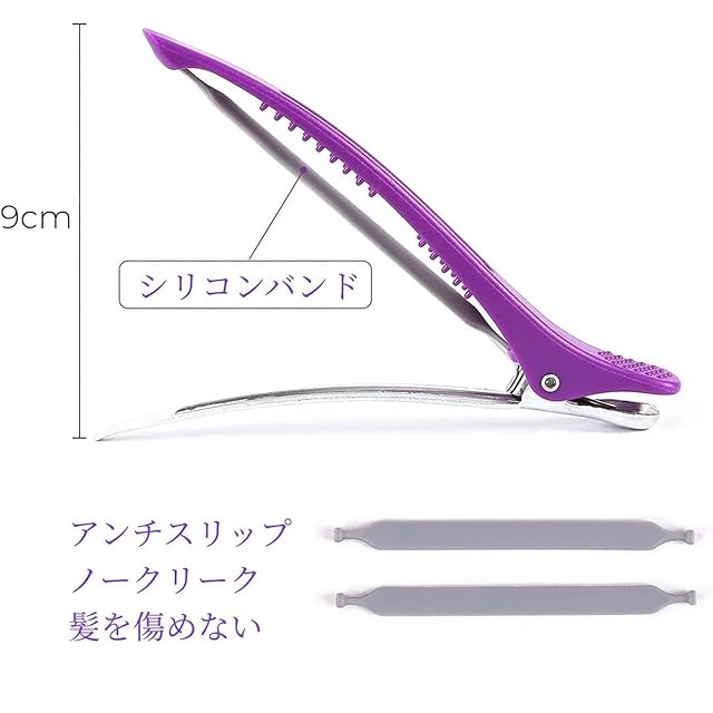 商品名:Giitoo ダッカール プロ用 ヘアクリップ 美容師 業務用 跡がつかない 滑り止めゴム付き (3本, 紫)