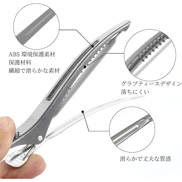 【ヘアクリップの素材・サイズ】優れた耐久性と防水性を備えた高品質なABS樹脂とアルミなどの軽量かつ強力な素材を使用しています。錆びたり壊れたりする心配がありません。1本あたりの重さはわずか8グラムで、持ち運びに便利です。髪の厚さや長さに合わせて使用できます。パッケージには6個の黒いヘアクリップが含まれています。