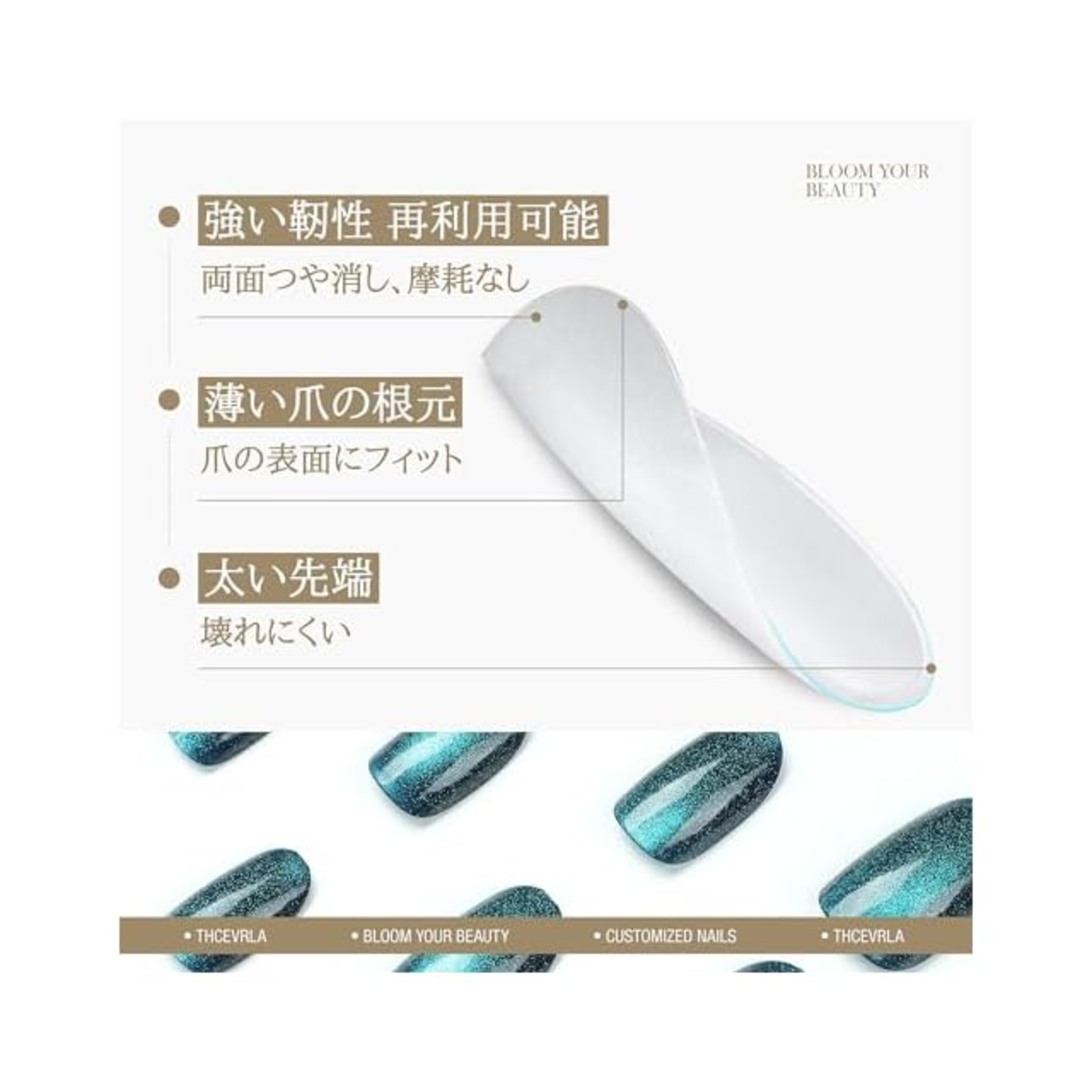 商品名:THCEVRLA ネイルチップ - 青 オーバル 手作りネイルチップ ショートク,キャッツアイ マグネット おしゃれ 付け爪ゲル化,ツールキットが付属しています,24枚入