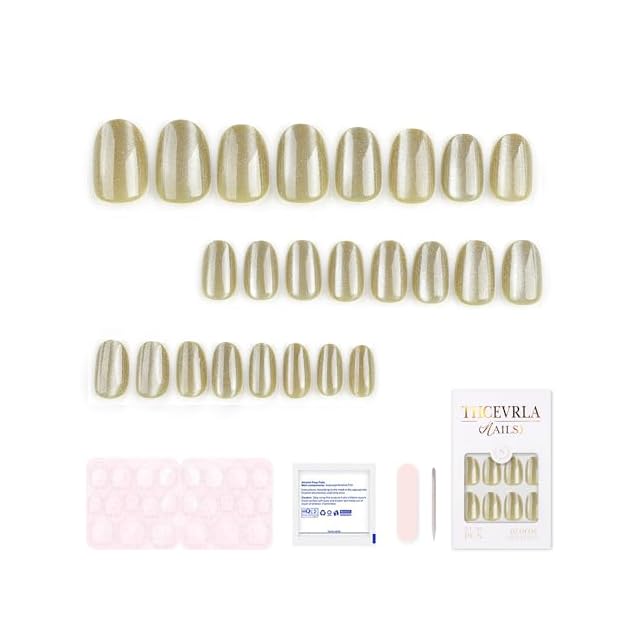 商品名:THCEVRLA ネイルチップ - 緑豆ペースト オーバル 手作りネイルチップ ショートク,キャッツアイ マグネット おしゃれ 付け爪ゲル化,ツールキットが付属しています,24枚入