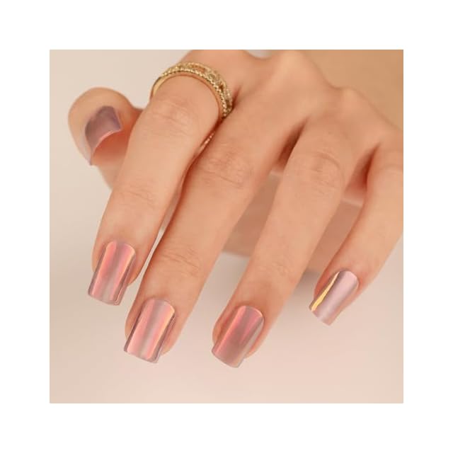 THCEVRLA ネイルチップ - ピンク カラフル 短い長方形 キャッツアイ 手作りネイルチップ ショートク,キャッツアイ マグネット おしゃれ 付け爪ゲル化,ツールキットが付属しています,24枚入