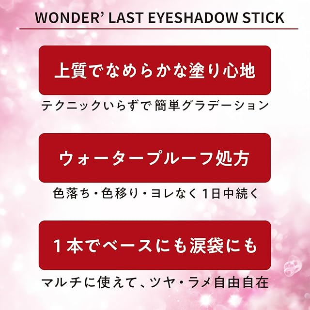 【ウォータープルーフ処方+ロングラスティング処方で高発色つづく】汗・水に強いウォータープルーフ処方とロングラスティング処方でメイクしたてのキラめきがつづきます。