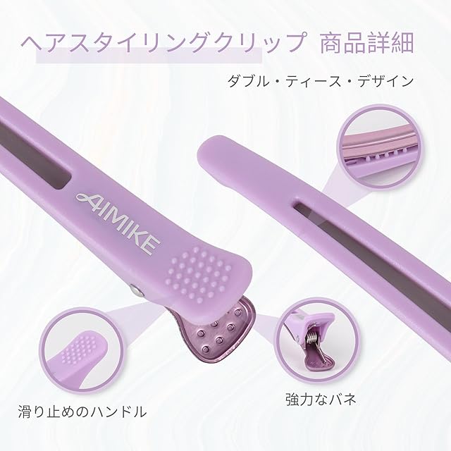 商品名:AIMIKE 4本入れ ダッカール 跡がつかない ヘアピン 美容師 ヘアクリップ 髪留め 前髪 クリップ ダッカールピン ブロッキング 滑りにくく 髪を傷つけない ヘアピン 大きめ 強力 カールクリップ レディース用 パープル