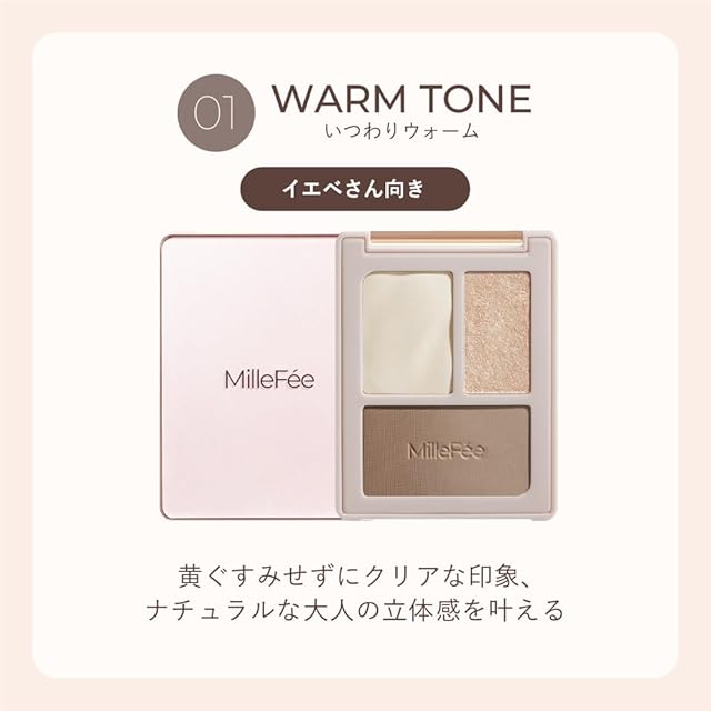 商品名:ミルフィー チート顔コントゥアパレット (03 ふっくらピンク) ハイライト シェーディング マットハイライト ラメなし ノーズシャドウ 立体感 小顔 MilleFee (マット/ツヤ)