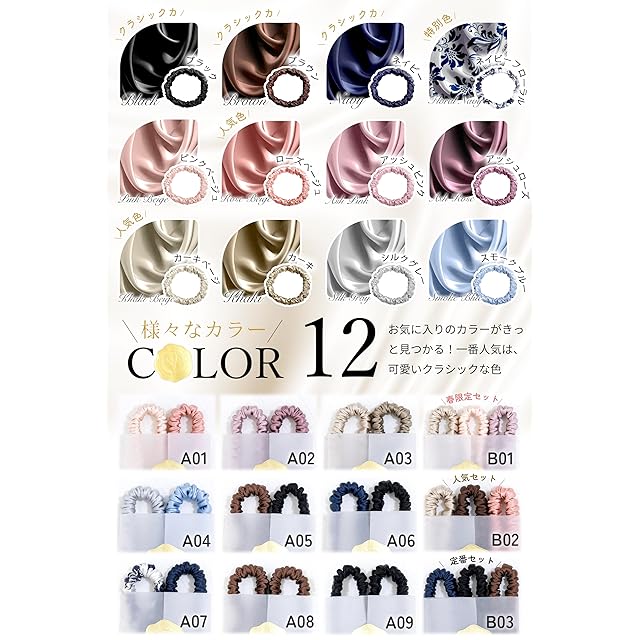 シルク ヘアゴム 【Poco'ce掲載・天然シルク100%・リボンシュシュ・11カラー展開】 シュシュ リボン 大きめ ヘアゴム 髪ゴム ゴム 跡がつかない 大人 黒 おしゃれ (Y42シルクグレー(リボンヘアゴム))