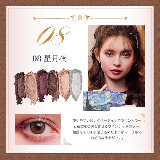 商品名:ミルフィー MilleFee 絵画アイシャドウ (08 星月夜) パレット ゴッホ バーガンディ