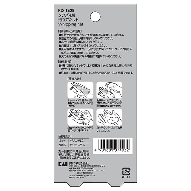 商品名:貝印(Kai Corporation) メンズ 4層泡立てネット 洗顔 フック付き ホワイト 濃密泡 たっぷり メンズ スキンケア KQ1828