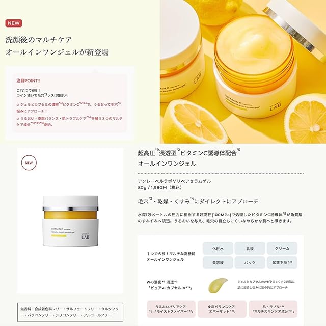 商品名:アンレーベルラボ Vリペアセラムゲル 80g 日本製 スキンケア ビタミンC誘導体 オールインワンジェル 毛穴 乾燥 うるおい