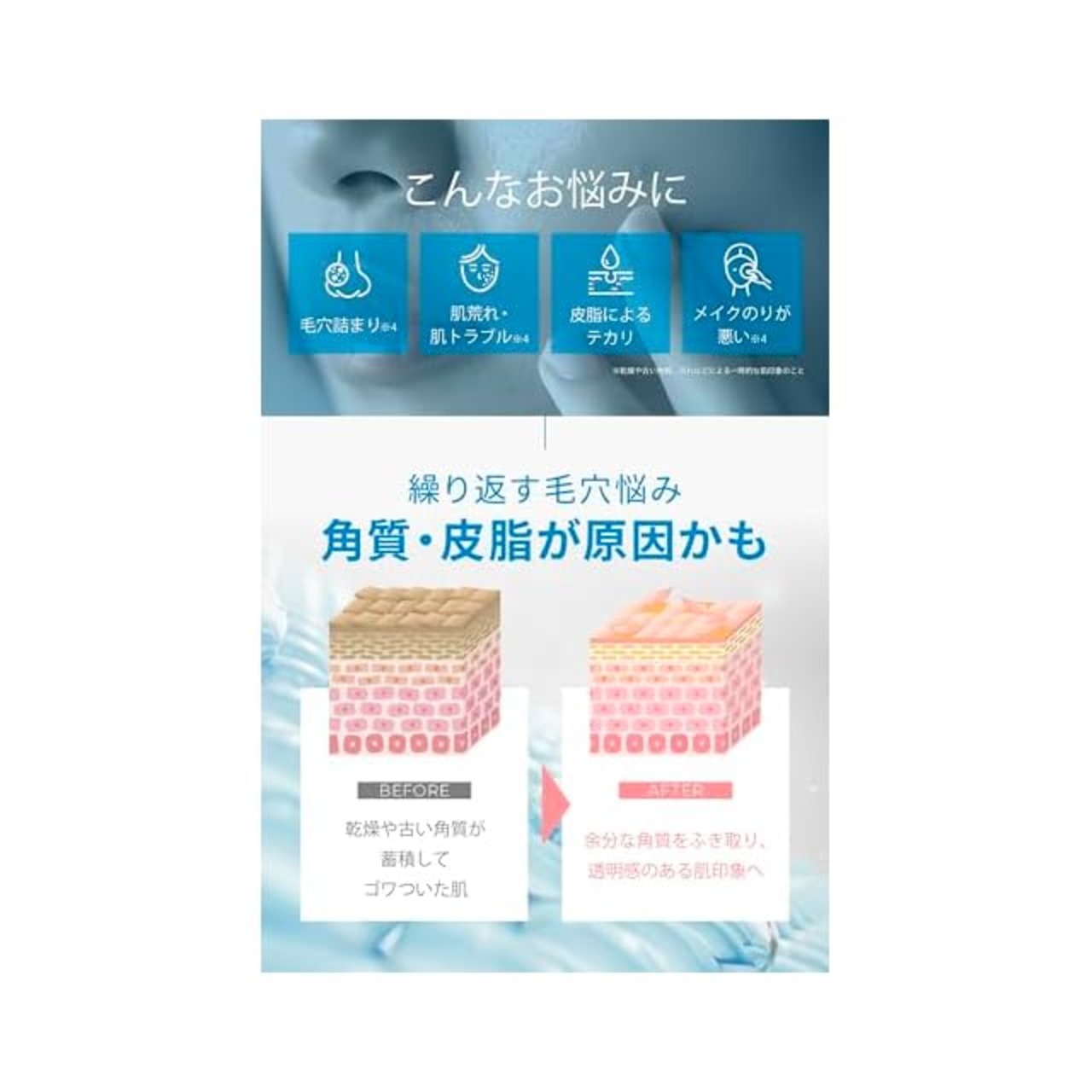 ✅【角質オフ×うるおい密着のWケア】凸凹面で古い角質や汚れをふき取り、スムース面でうるおいを肌に届ける※1枚2役のトナーパッド。