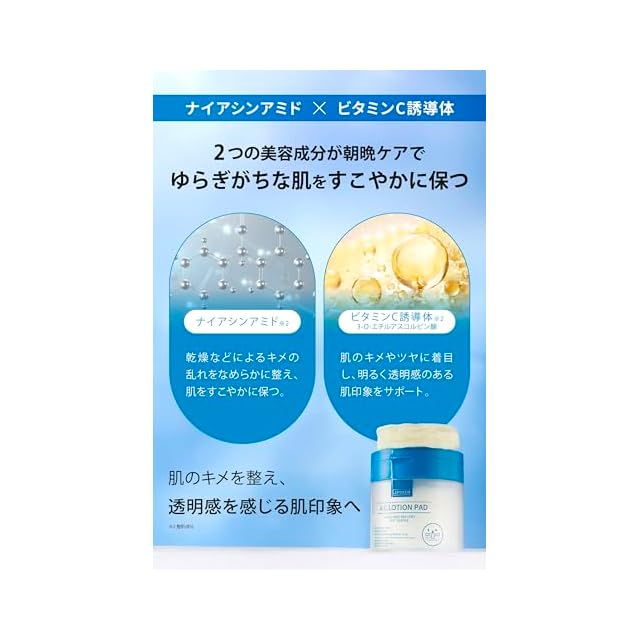 ✅【朝晩使える、肌あたりなめらかな使い心地】天然由来セルロースを使用した高密度パッドが肌にやさしく密着。ベタつきにくい使用感で、忙しい日も手軽にスキンケア。