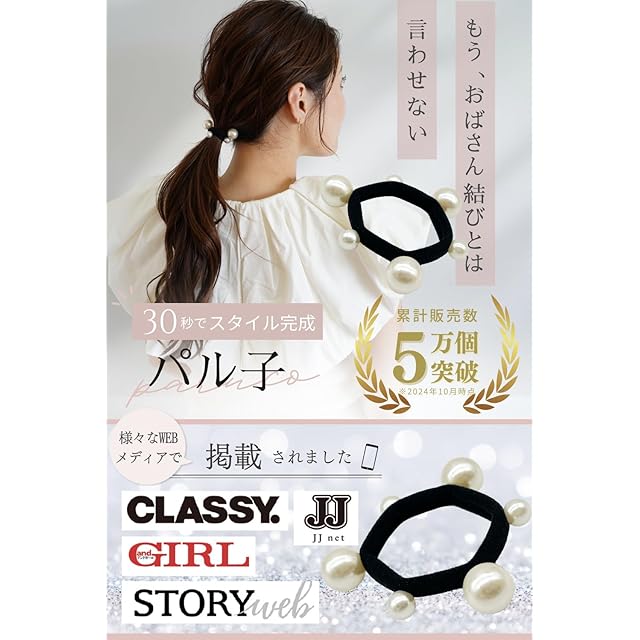 【大人気のパール付きヘアゴム "パル子"】SNSやインフルエンサーにも多数紹介され、多くの方にご愛用いただいているヘアアクセサリー。上品なパールデザインで、普段使いはもちろん、オフィスやフォーマルシーンにも最適です。