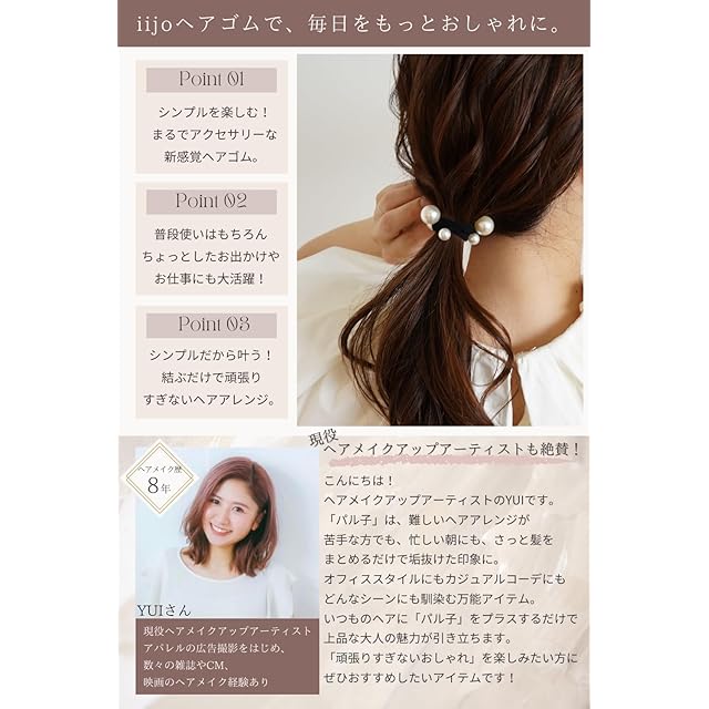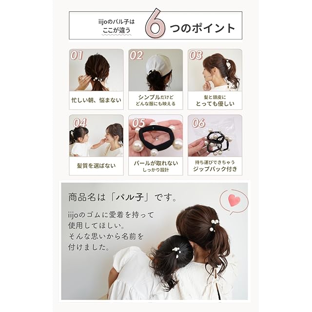 【専門家推薦! 30秒でスタイル完成】 ヘアゴム パール パル子 iijo ヘアアクセサリー おしゃれ シンプル 黒 跡がつかない 痛くない (パル子)