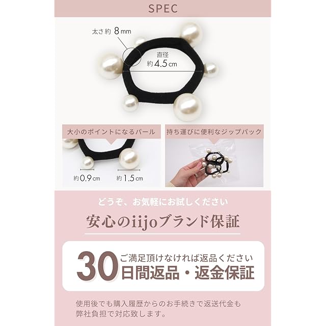 商品名:【専門家推薦! 30秒でスタイル完成】 ヘアゴム パール パル子 iijo ヘアアクセサリー おしゃれ シンプル 黒 跡がつかない 痛くない (パル子)