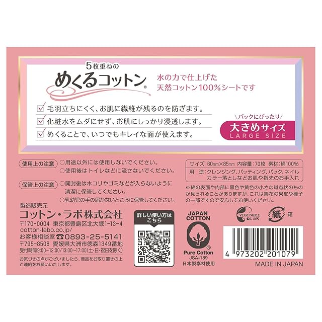 商品名:コットンラボ 5枚重ねのめくるコットン 大きめサイズ 70シート (x 1)