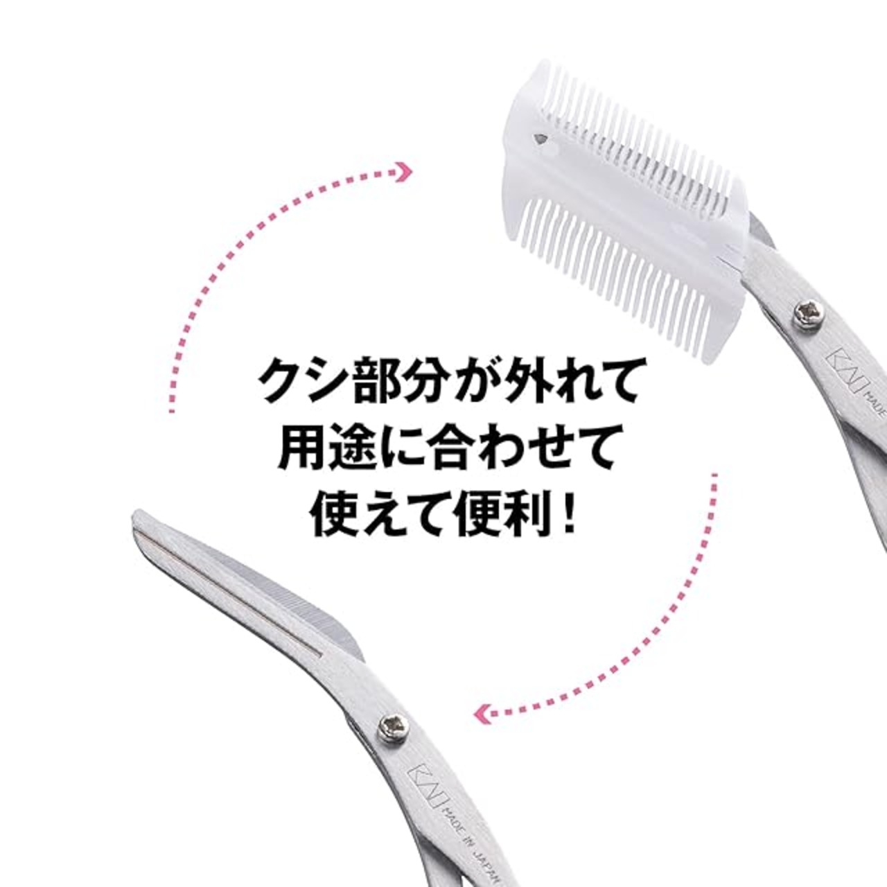【コームは用途に合わせて取り外しが可能】シンプルに細部をカットしたいときには、コーム部分を取り外して使うこともできます。眉を一本一本カットする際に便利です。用途に合わせて使い分ければ、活用の幅が広がります。