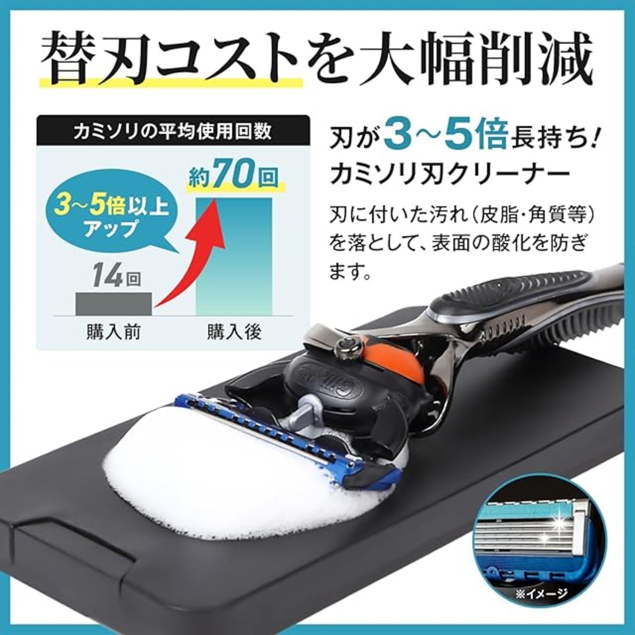 【新しくなって登場】カミソリ 刃を最大3倍~5倍長持ちさせ、替え刃コストを大幅に削減できる最新のカミソリ刃クリーナー。日本語説明付き。