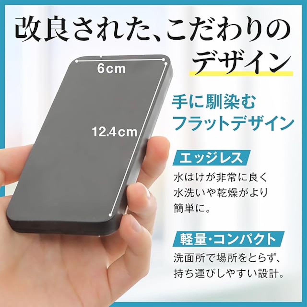 【ジャストサイズ】コンパクトでスペースの限られた洗面所でも場所を取りません。エッジレスなデザインで水場での使用にも適しています。