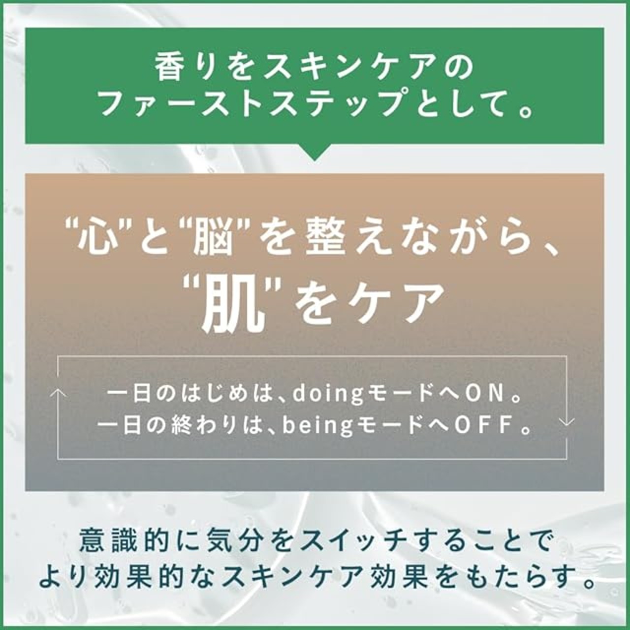 1日を振り返り、頭と心をリセット。感情に働きかけるマインドフルフレグランス。 スキンケア前にシュッと吹きかけるだけで気持ちを簡単に切り替えリラックスできます。