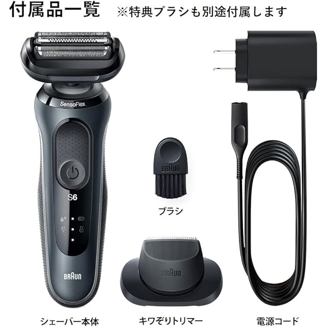 付属品:キワぞりトリマー、網刃保護キャップ、電源コード、ブラシ