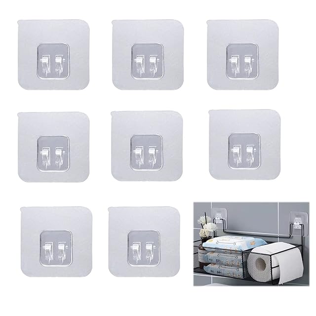 【浴室ラックテープ】8枚の浴室ラック式テープは、壁やドアを壊すことなく、透明でユニークなダブルボタン設計を採用しています。バスルーム、キッチン、寝室の棚を支え、スペースを節約し、デスクトップを清潔に保つことができます。