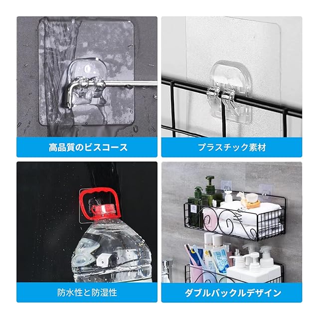 <p>【べたつきが残りません】吸盤も接着剤も透明で壁に貼れるので、省スペースで壁の美しさを損ないません。 穴あけ不要なので取付面にキズを付ける必要がありません。 また、剥がすと跡が残らず綺麗に仕上がります。 新築住宅や賃貸住宅に最適です。</p> <p>【再利用可能】使用後にフックが変形しない場合は、粘度を下げ、ステッカーのように壁から剥がし、自己粘着壁フックを水で洗い、ヘアドライヤーで加熱して再利用してください。</p> <p>【幅広い用途】穴あけ不要のウォールフックは、木材、ガラス、タイル、金属などの硬い表面に簡単に取り付けられます。 壁紙、塗料、塗装された壁、ざらざらした表面には適していません。</p> <p>【おしゃれなスティックウォールフック】ほとんど跡が残らず、目立ちません。 タオル、洋服、鍵、傘、装飾品などを吊るすのに最適で、スペースを効果的に節約できます。</p>