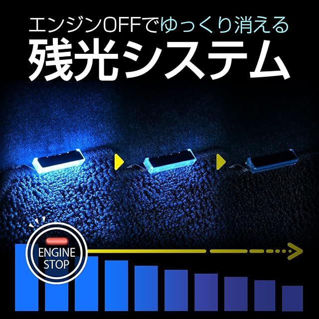 残光機能つきで、エンジンOFF時にゆっくりと消えていきます。