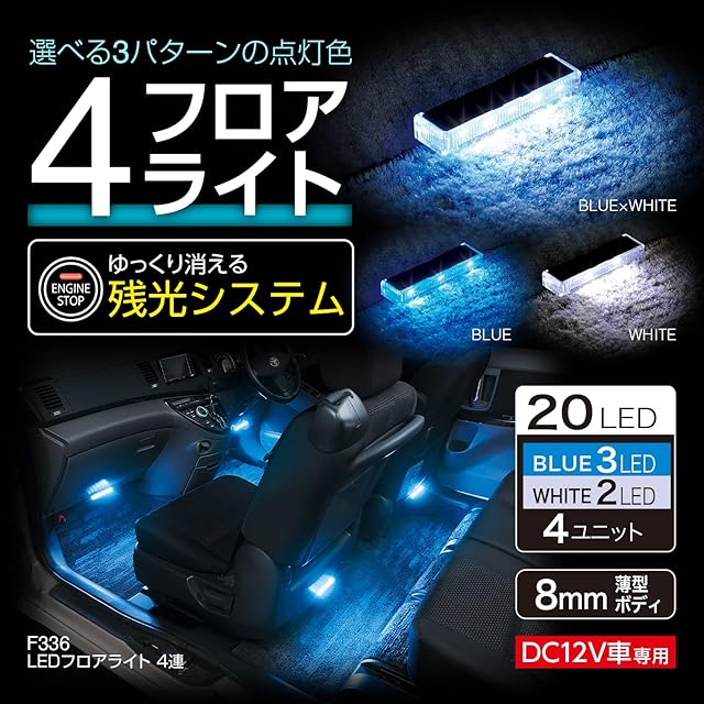 セイワ(SEIWA) 車内用品 LEDフロアライト 4連 ブルー/ホワイト切り替え イルミネーション F336 高輝度LED使用 シガープラグ DC12V電源