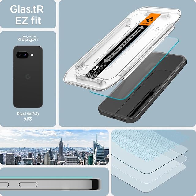商品名:Spigen Google Pixel 9a ガラスフィルム 指紋認証対応 Pixel9a 保護フィルム 貼り付けキット付き 2枚入 ナノコーティング 飛散防止 EZ Fit AGL08938