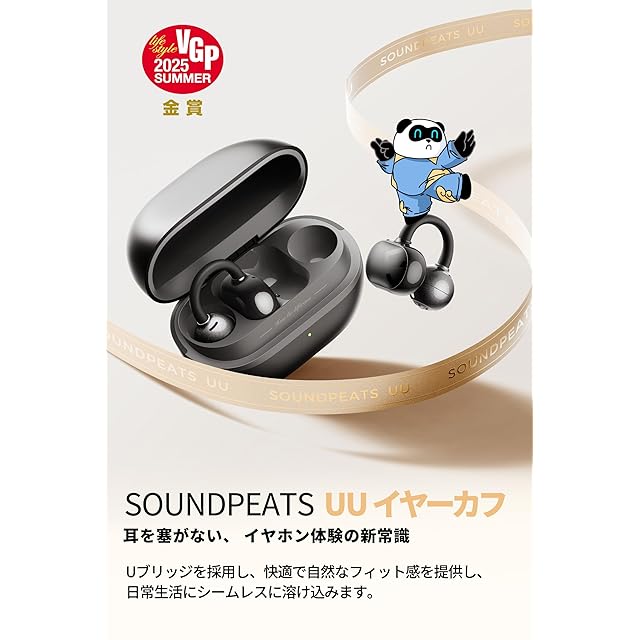 商品名:SOUNDPEATS UU イヤーカフ ワイヤレスイヤホン オープンイヤー マルチポイント接続/最大30時間再生/急速充電対応/Bluetooth5.4/専用アプリ/IPX5防水【VGP2025 SUMMER 金賞】 耳挟み式 イヤホン 耳を塞がない 開放型 イヤホン サウンドピーツ POP Clip (ブラック)