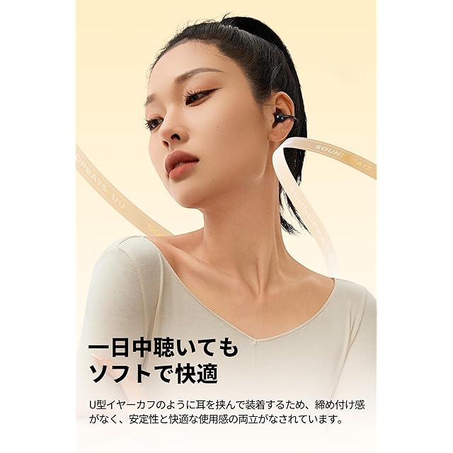 【 SOUNDPEATS UUイヤーカフ、至上の体験!】U字型のコンパクトで軽量なボディとスマートなデザインにより、着けているのを忘れるほど快適な装着感を実現します。イヤーカフ型のイヤホンなので、アクセサリーのように耳の軟骨に挟むだけで使用でき、メガネやサングラスをかけたままでもご使用いただけます。カナル型イヤホンで気になる蒸れ・痛み・かゆみ、骨伝導型や耳掛け型で起こりがちな耳への負担、サングラスやメガネ、マスクとの干渉といった問題は発生しません。イヤホンの重さもわずか4.73g、羽のような軽さです。長時間の使用でも耳への負担を最小限に抑え、安定した装着感を提供します。