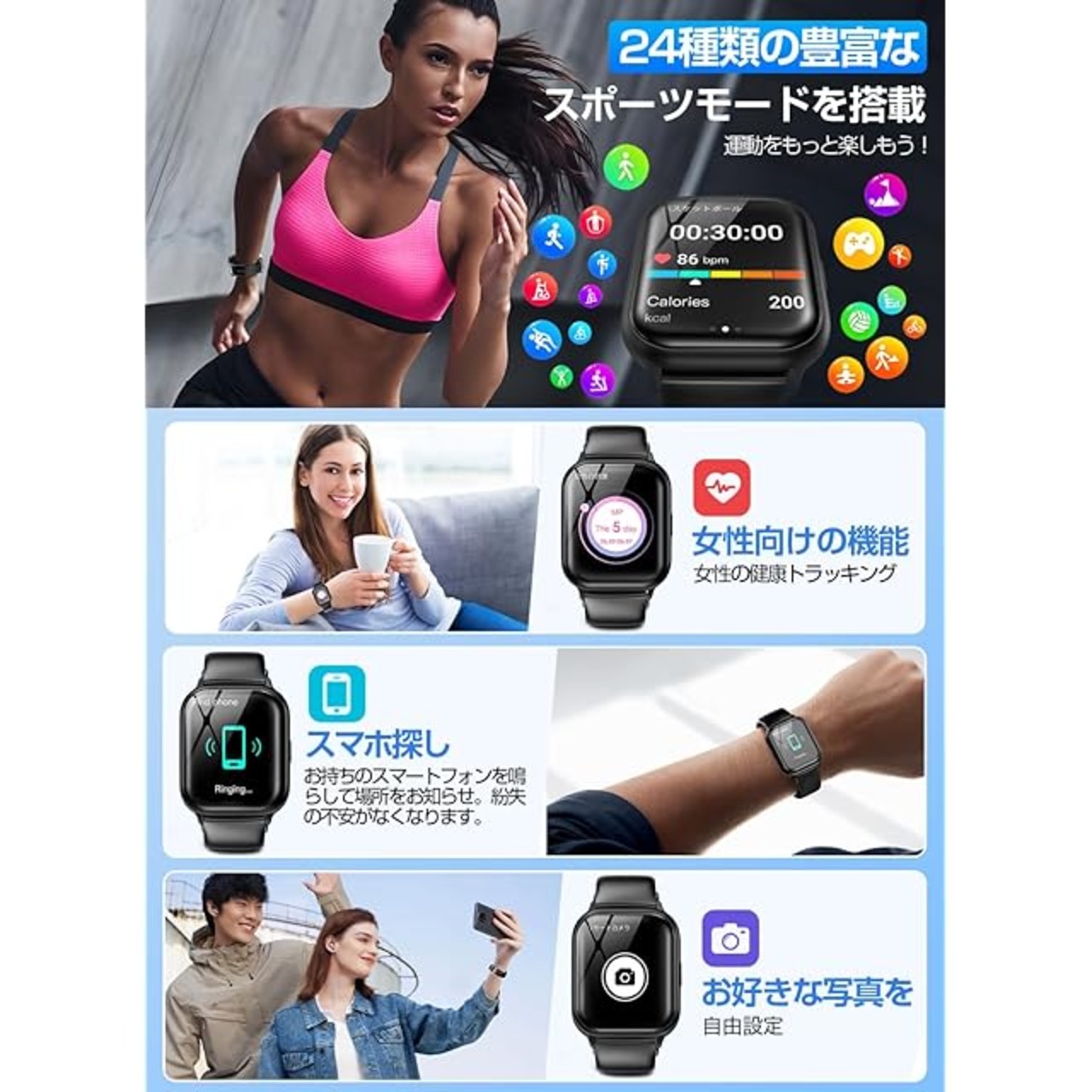 商品名:スマートウォッチ【2025性能革新モデル・業界最新傑作】Bluetooth通話機能 軽量 1.85インチHD大画面 SMS/Line通知 スマートウォッチ 音楽再生 多機能スマートウォッチ 活動量計 iPhone対応&アンドロイド対応 様々な種類運動モード IP68生活防水 メッセージ通知 腕時計 天気予報 レディース メンズ Smart Watch 多種類文字盤 アラーム 歩数計 ブラック