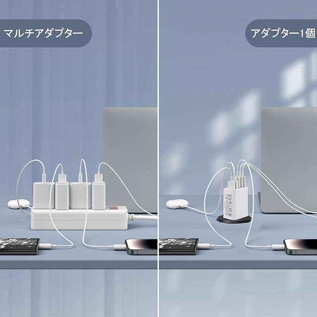 複数ポート付きUSB壁掛け充電器 - 複数のデバイスを同時に充電でき、USB Cは急速充電に対応。 <br>PD 3.0急速充電技術搭載のUSB-C充電器は、わずか30分で携帯電話を15~60%充電できます。古くて遅い充電器を置き去りにして、簡単な生活を楽しみましょう。 <br>急速充電はスマート電力分配をサポートし、5台のデバイスを接続すると、ポート間で効率的に電力が分配され、最適な充電電流が確保されます。5ポート充電器は、複数のデバイスを充電するニーズを迅速かつ効率的に解決します。 <br>スマートデザイン:2つのUSB-Cポートと3つのUSB-Aポートが1つの充電器に搭載されています。 <br>USB-CとUSB-Aは、異なるポートを持つ充電器の乱雑さからあなたを解放します。