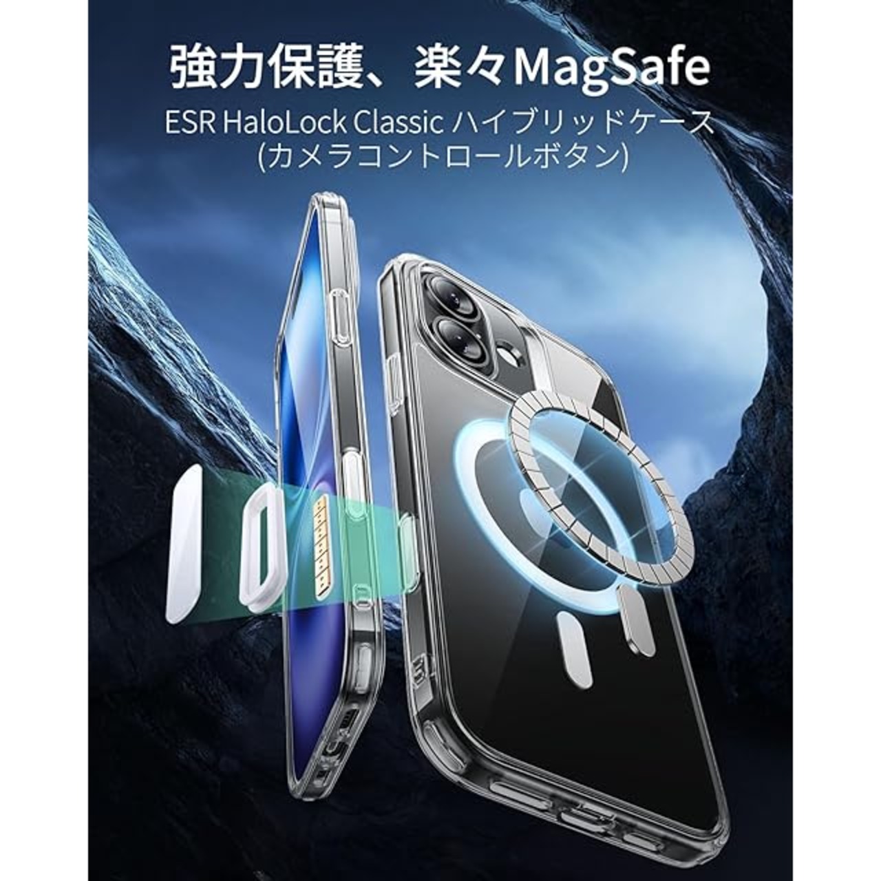 ESR iPhone 16 ケース【カメラコントロール・米軍MIL規格】 傷に強い背面 ワイヤレス充電 ストラップホール付き 耐黄変 MagSafe対応 耐衝撃 マグネットスマホケース あいふおん16ケース HaloLock搭載 ハイブリッド磁気 iPhone16対応 クリア