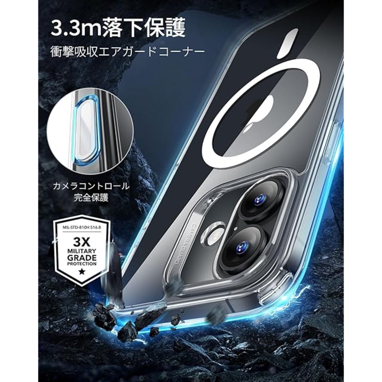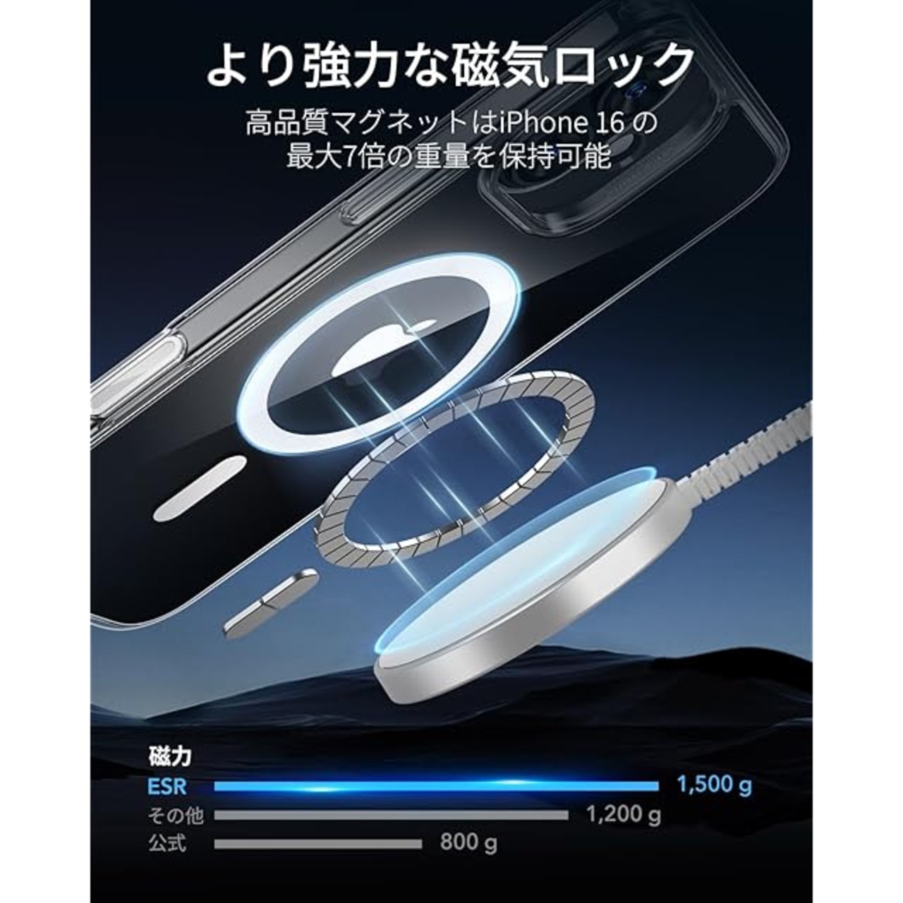 商品名:ESR iPhone 16 ケース【カメラコントロール・米軍MIL規格】 傷に強い背面 ワイヤレス充電 ストラップホール付き 耐黄変 MagSafe対応 耐衝撃 マグネットスマホケース あいふおん16ケース HaloLock搭載 ハイブリッド磁気 iPhone16対応 クリア