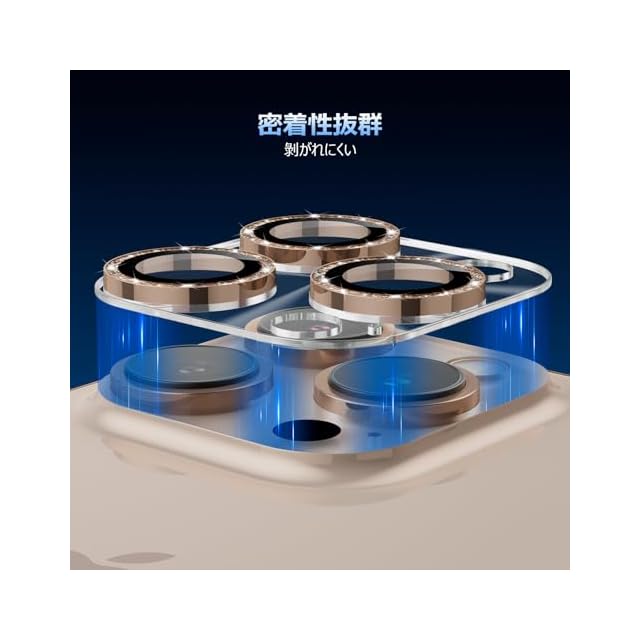 商品名:Podick カメラフィルム iPhone 16 Pro/16 Pro Max用 カメラカバー キラキラ 9H強化ガラス アルミ合金 アイフォン16プロ/16Pro Max用 カメラ保護 ピカピカ キズ防止 耐衝撃 高透過率 黒縁取り 露出オーバー防止 極薄 レンズカバー プロテクター ゴールド