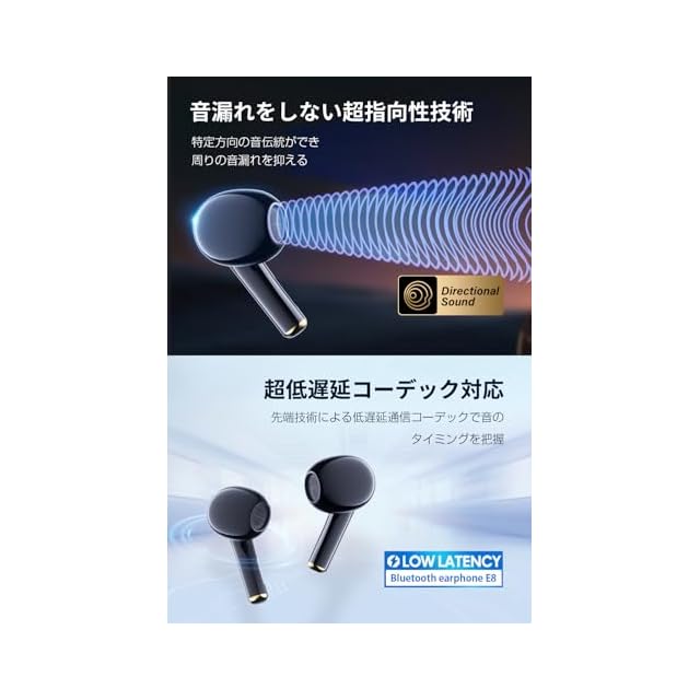 【Bluetooth5.3技術&自動ペアリング】インナーイヤー型完全ワイヤレスイヤホンはBluetooth5.3チップを採用し、従来より省エネの上に安定性を保護でき、「音遅延」も減少し、Bluetooth信号を左右同時に伝送することにより、接続時にはより安定伝送、より低電力消費、より高速化を実現しました。デバイスとの接続は初期登録後難しい操作が不要で、ケースから取り出すだけで自動的にペアリングされ、手間が省けて使い勝手が向上します。