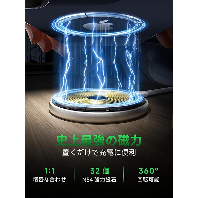 【史上最強の磁力、絶対に落ちない!】このワイヤレス充電器 マグネット式は、32個のN54アップグレード版の超強力磁石を内蔵しており、業界標準の16個のN52磁石と比較して磁力が40%も増強されています。同時に、磁場の分布と整合性が最適化されており、デバイスと充電器が1:1の精度で整列することを確保しています。これにより、オフィスで忙しくメールを処理している時でも、暗闇の中で充電ケーブルを探すのに苦労している時でも、携帯電話を軽く置くだけで1秒で瞬時に吸着し、しっかりとロックされて落ちることがありません。位置ずれや接触ポイントが見つからない、充電が中断されるといった煩わしさから解放されます!NICEGRET磁気ワイヤレス充電器を選んで、高効率で安定した完璧な体験を楽しみ、毎回の充電をより簡単で快適にしましょう!