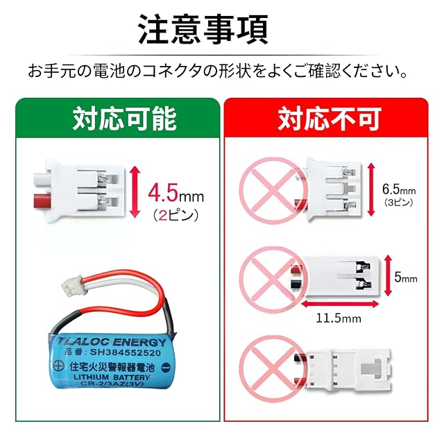 商品名:TLALOC ENERGY SH384552520 [PSE認証済] 専用 住宅用火災警報器交換用電池 CR-2/3AZ 3V リチウム電池