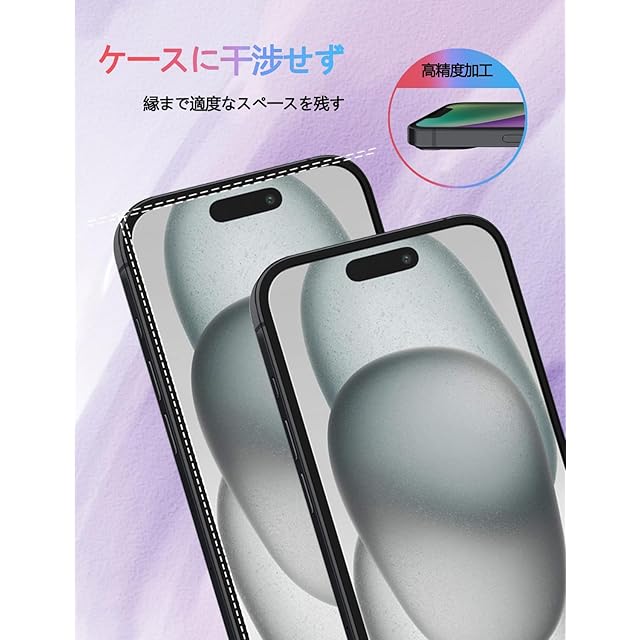 【超お得な2+2枚セット・ご注文前にお読みください・対応機種】iPhone 15 6.1型 に適応しています! ご注意!iPhone15の本体はデザインの側 面が湾曲しているため、液晶の端部分 が湾曲しております。そのため保護範囲は液晶の平面部分を 保護するタイプとなっております。